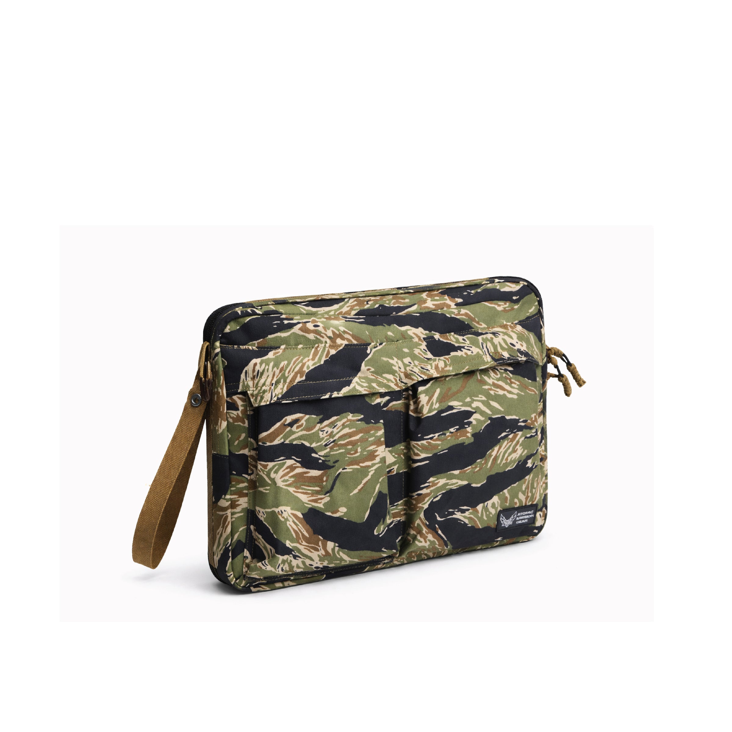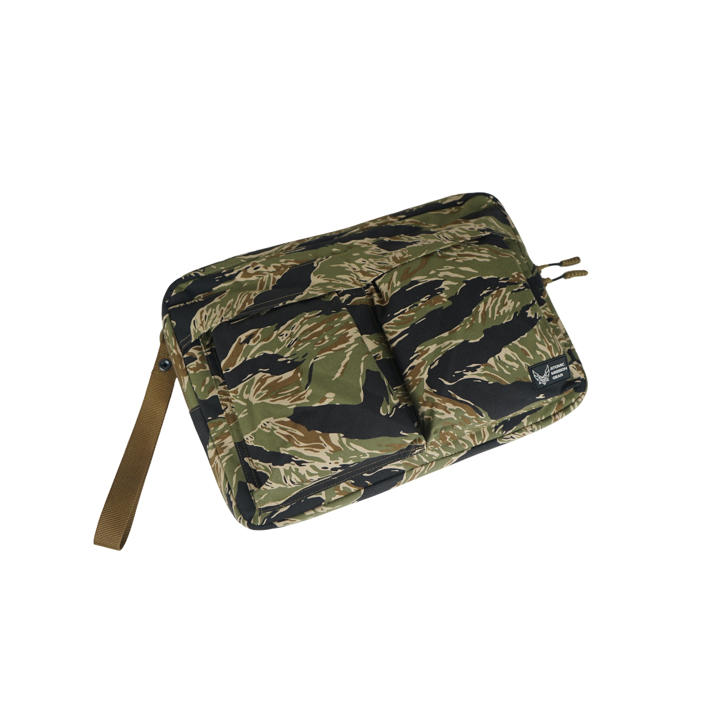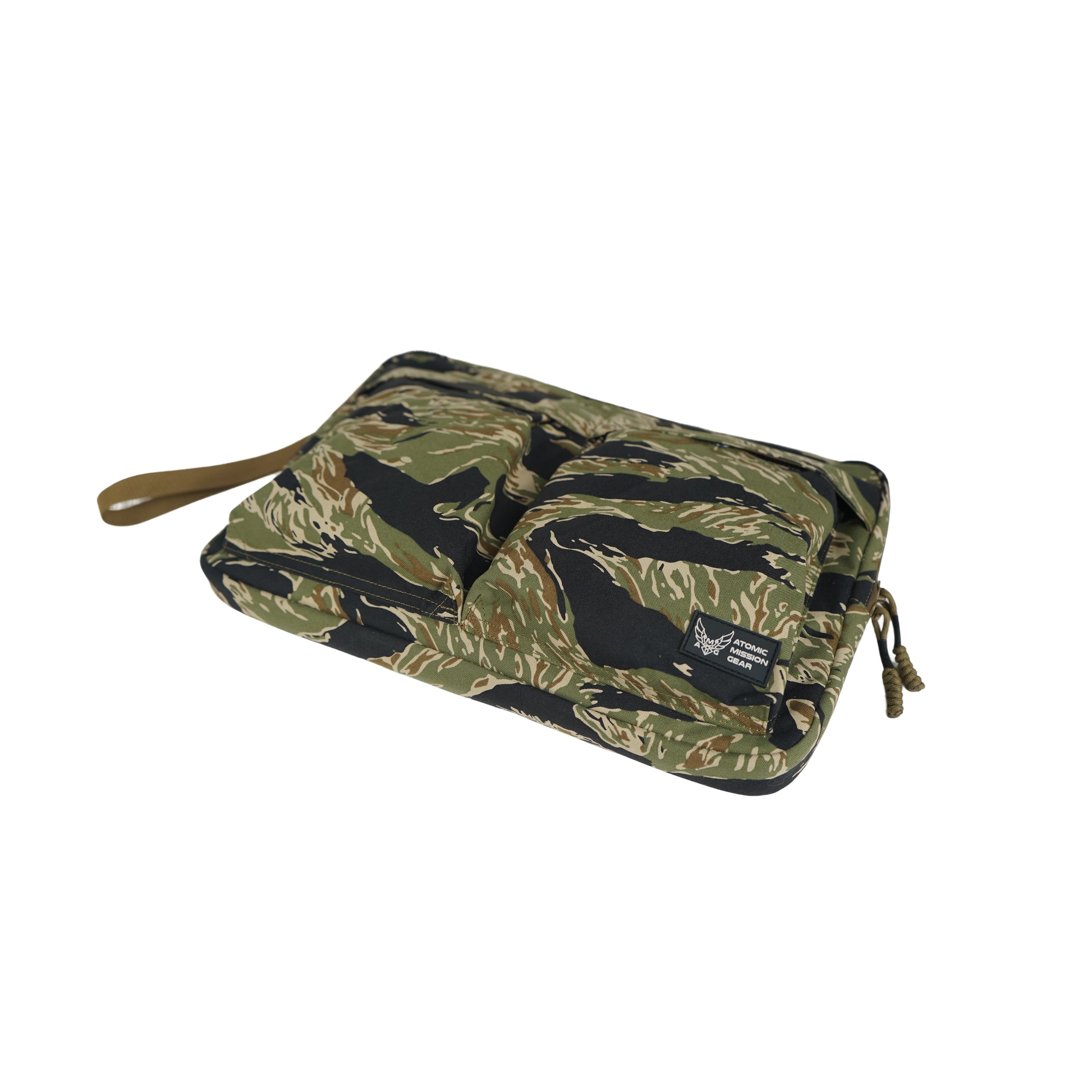 The Tiger Stripe Utility Clutch is a padded tactical laptop and gear organizer designed for secure storage, portability, and modular utility.